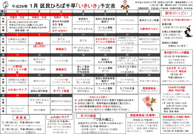 【 12月 】 ■ [要町三丁目町会] 古紙回収 日時:12月21日(日) 9時30分~ 各戸玄関前まで回収に伺います 【 1月 】 ■ 第17回 ふるさと千川どんど焼き 日時:1月11日(日) 10時00分~12時00分 会場:ふるさと千川ひろば 獅子舞ほか伝統芸能、芋のこ汁、おしるこ ■ [要町三丁目町会] 古紙回収 日時:1月25日(日) 9時30分~ 各戸玄関前まで回収に伺います