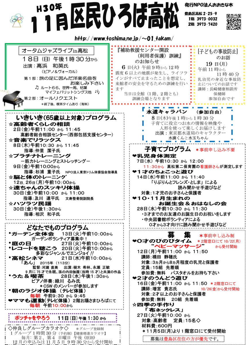 区民ひろば高松 平成30年11月予定