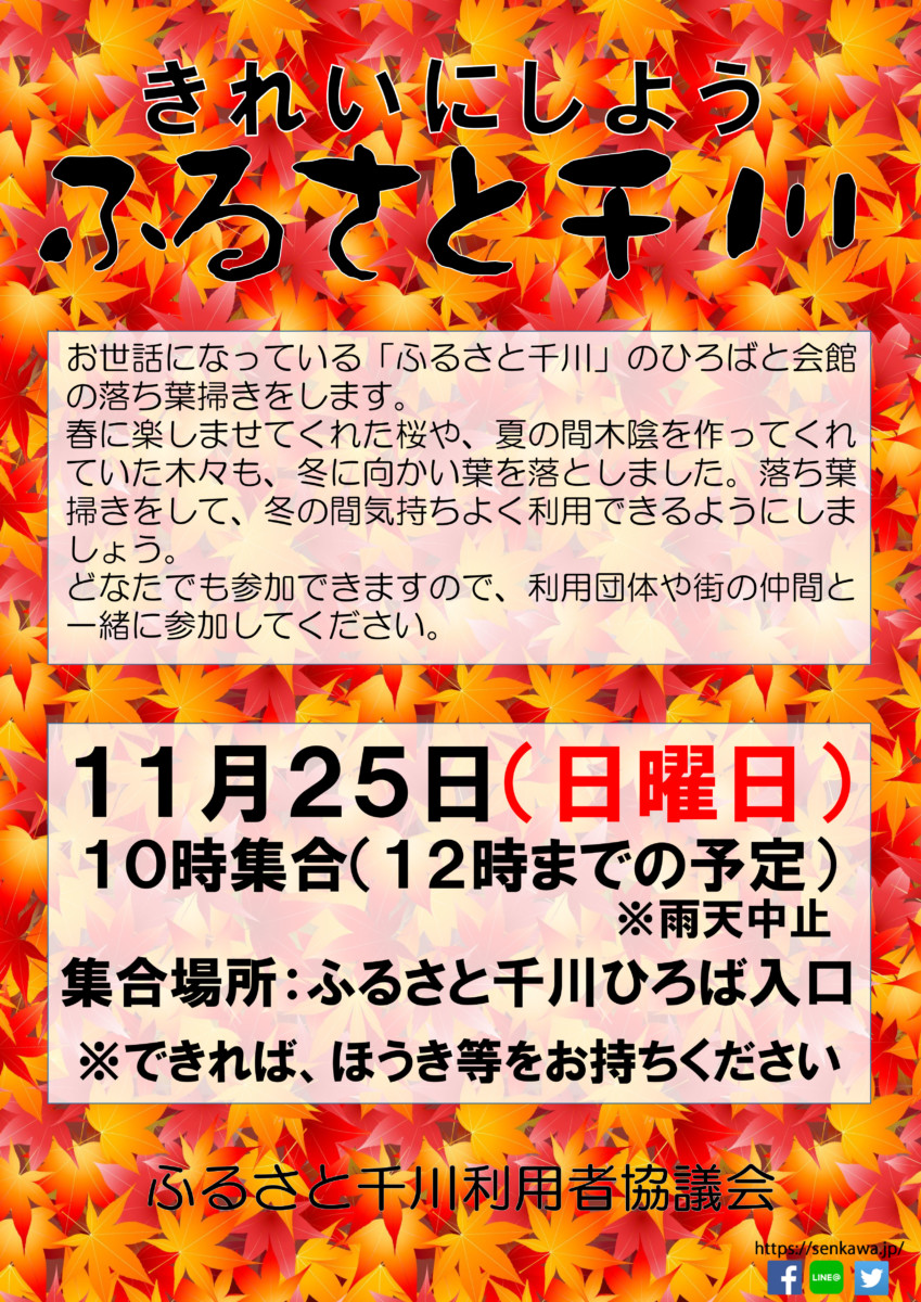 下記の日程はイベント等のため休園になります ご理解、ご協力をお願いします 【 12月6日(土)7時から13時 】 せんかわみんなの家 運動会のため