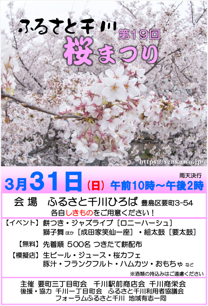 【 12月 】 ■ [要町三丁目町会] 古紙回収 日時:12月21日(日) 9時30分~ 各戸玄関前まで回収に伺います 【 1月 】 ■ 第17回 ふるさと千川どんど焼き 日時:1月11日(日) 10時00分~12時00分 会場:ふるさと千川ひろば 獅子舞ほか伝統芸能、芋のこ汁、おしるこ ■ [要町三丁目町会] 古紙回収 日時:1月25日(日) 9時30分~ 各戸玄関前まで回収に伺います