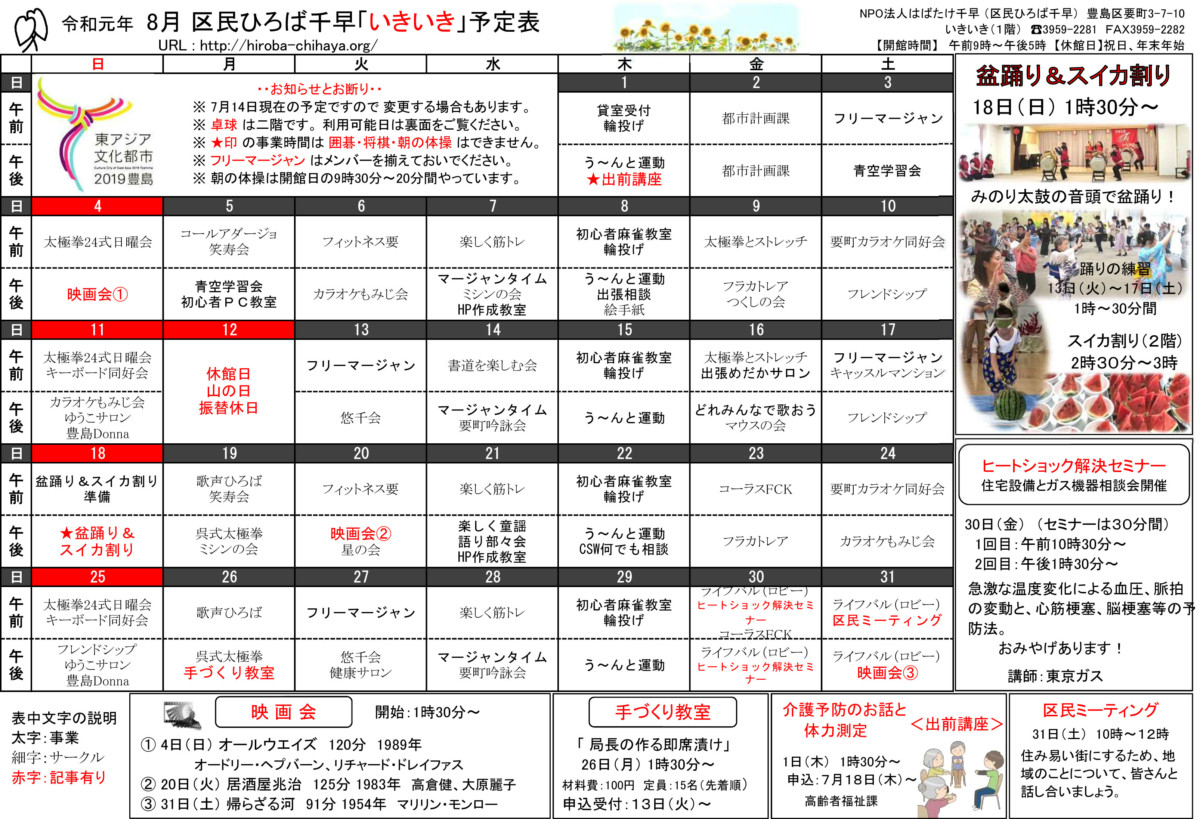 【 12月 】 ■ [要町三丁目町会] 古紙回収 日時:12月21日(日) 9時30分~ 各戸玄関前まで回収に伺います 【 1月 】 ■ 第17回 ふるさと千川どんど焼き 日時:1月11日(日) 10時00分~12時00分 会場:ふるさと千川ひろば 獅子舞ほか伝統芸能、芋のこ汁、おしるこ ■ [要町三丁目町会] 古紙回収 日時:1月25日(日) 9時30分~ 各戸玄関前まで回収に伺います