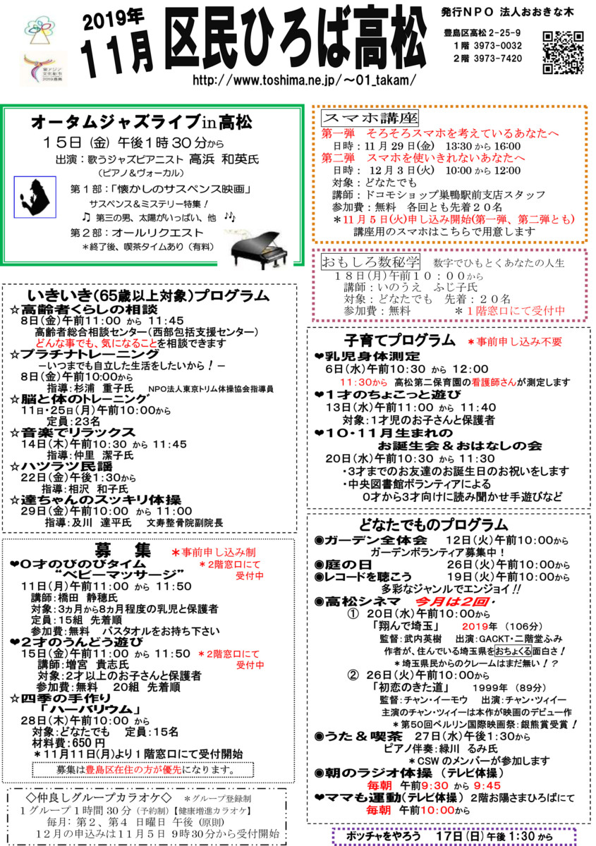 区民ひろば高松 令和元年11月予定