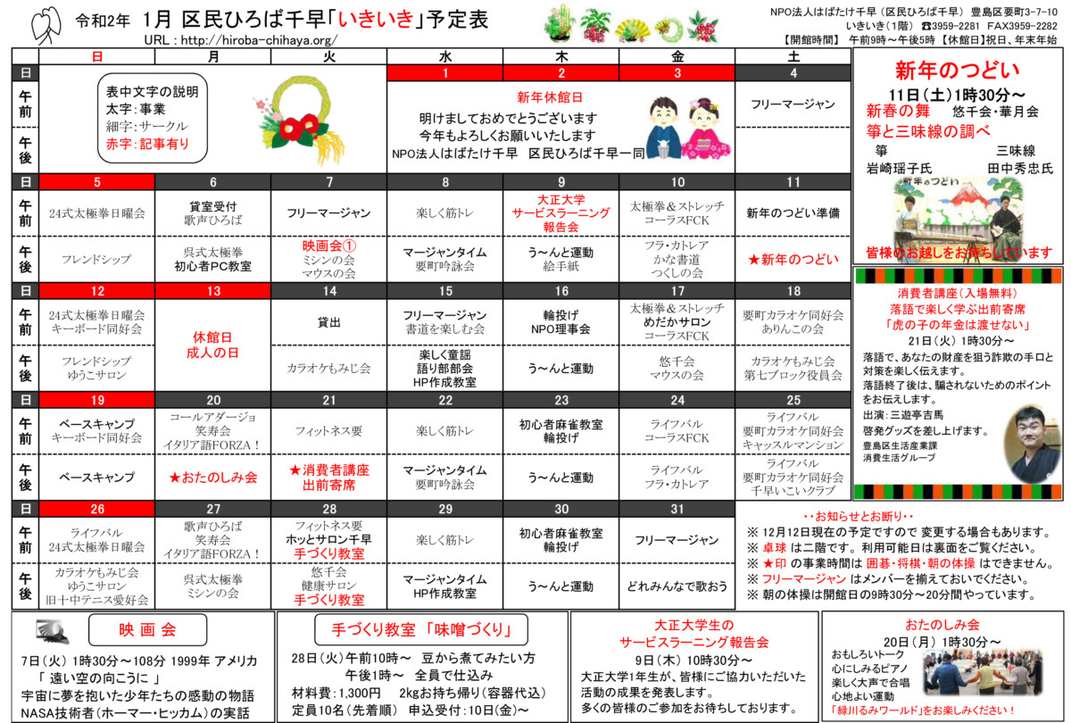 【 12月 】 ■ [要町三丁目町会] 古紙回収 日時:12月21日(日) 9時30分~ 各戸玄関前まで回収に伺います 【 1月 】 ■ 第17回 ふるさと千川どんど焼き 日時:1月11日(日) 10時00分~12時00分 会場:ふるさと千川ひろば 獅子舞ほか伝統芸能、芋のこ汁、おしるこ ■ [要町三丁目町会] 古紙回収 日時:1月25日(日) 9時30分~ 各戸玄関前まで回収に伺います