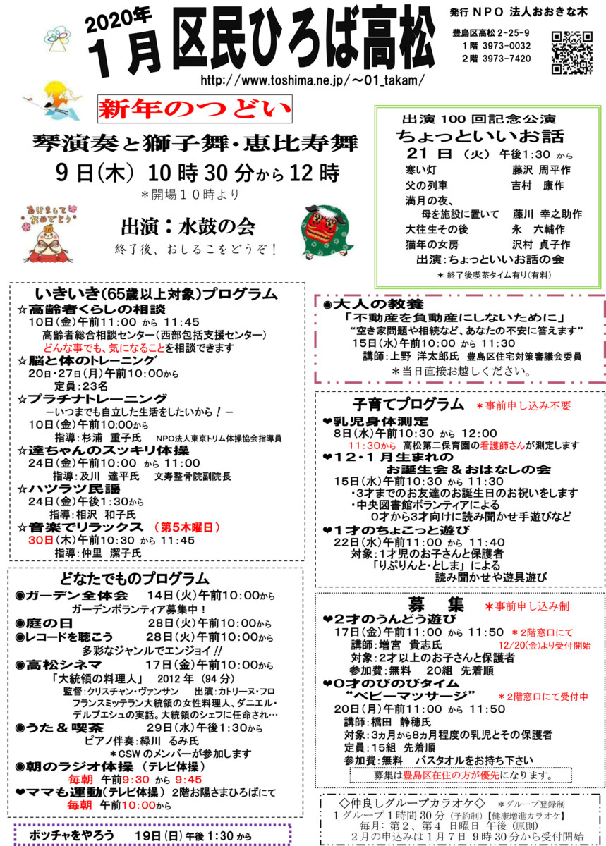 【 12月 】 ■ [要町三丁目町会] 古紙回収 日時:12月21日(日) 9時30分~ 各戸玄関前まで回収に伺います 【 1月 】 ■ 第17回 ふるさと千川どんど焼き 日時:1月11日(日) 10時00分~12時00分 会場:ふるさと千川ひろば 獅子舞ほか伝統芸能、芋のこ汁、おしるこ ■ [要町三丁目町会] 古紙回収 日時:1月25日(日) 9時30分~ 各戸玄関前まで回収に伺います