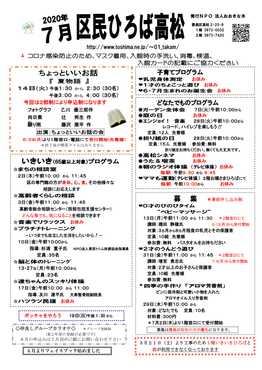 【 12月 】 ■ [要町三丁目町会] 古紙回収 日時:12月21日(日) 9時30分~ 各戸玄関前まで回収に伺います 【 1月 】 ■ 第17回 ふるさと千川どんど焼き 日時:1月11日(日) 10時00分~12時00分 会場:ふるさと千川ひろば 獅子舞ほか伝統芸能、芋のこ汁、おしるこ ■ [要町三丁目町会] 古紙回収 日時:1月25日(日) 9時30分~ 各戸玄関前まで回収に伺います