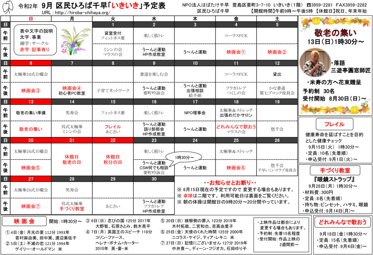 【 12月 】 ■ [要町三丁目町会] 古紙回収 日時:12月21日(日) 9時30分~ 各戸玄関前まで回収に伺います 【 1月 】 ■ 第17回 ふるさと千川どんど焼き 日時:1月11日(日) 10時00分~12時00分 会場:ふるさと千川ひろば 獅子舞ほか伝統芸能、芋のこ汁、おしるこ ■ [要町三丁目町会] 古紙回収 日時:1月25日(日) 9時30分~ 各戸玄関前まで回収に伺います