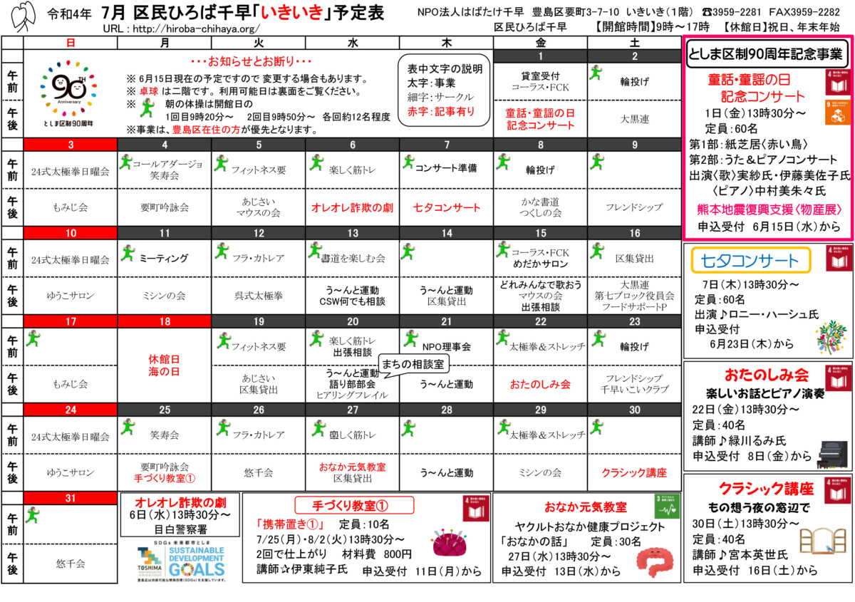 【 12月 】 ■ [要町三丁目町会] 古紙回収 日時:12月21日(日) 9時30分~ 各戸玄関前まで回収に伺います 【 1月 】 ■ 第17回 ふるさと千川どんど焼き 日時:1月11日(日) 10時00分~12時00分 会場:ふるさと千川ひろば 獅子舞ほか伝統芸能、芋のこ汁、おしるこ ■ [要町三丁目町会] 古紙回収 日時:1月25日(日) 9時30分~ 各戸玄関前まで回収に伺います