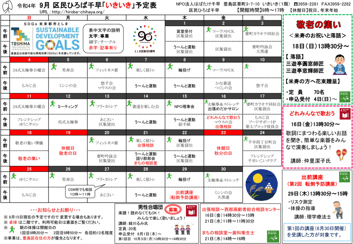 【 12月 】 ■ [要町三丁目町会] 古紙回収 日時:12月21日(日) 9時30分~ 各戸玄関前まで回収に伺います 【 1月 】 ■ 第17回 ふるさと千川どんど焼き 日時:1月11日(日) 10時00分~12時00分 会場:ふるさと千川ひろば 獅子舞ほか伝統芸能、芋のこ汁、おしるこ ■ [要町三丁目町会] 古紙回収 日時:1月25日(日) 9時30分~ 各戸玄関前まで回収に伺います