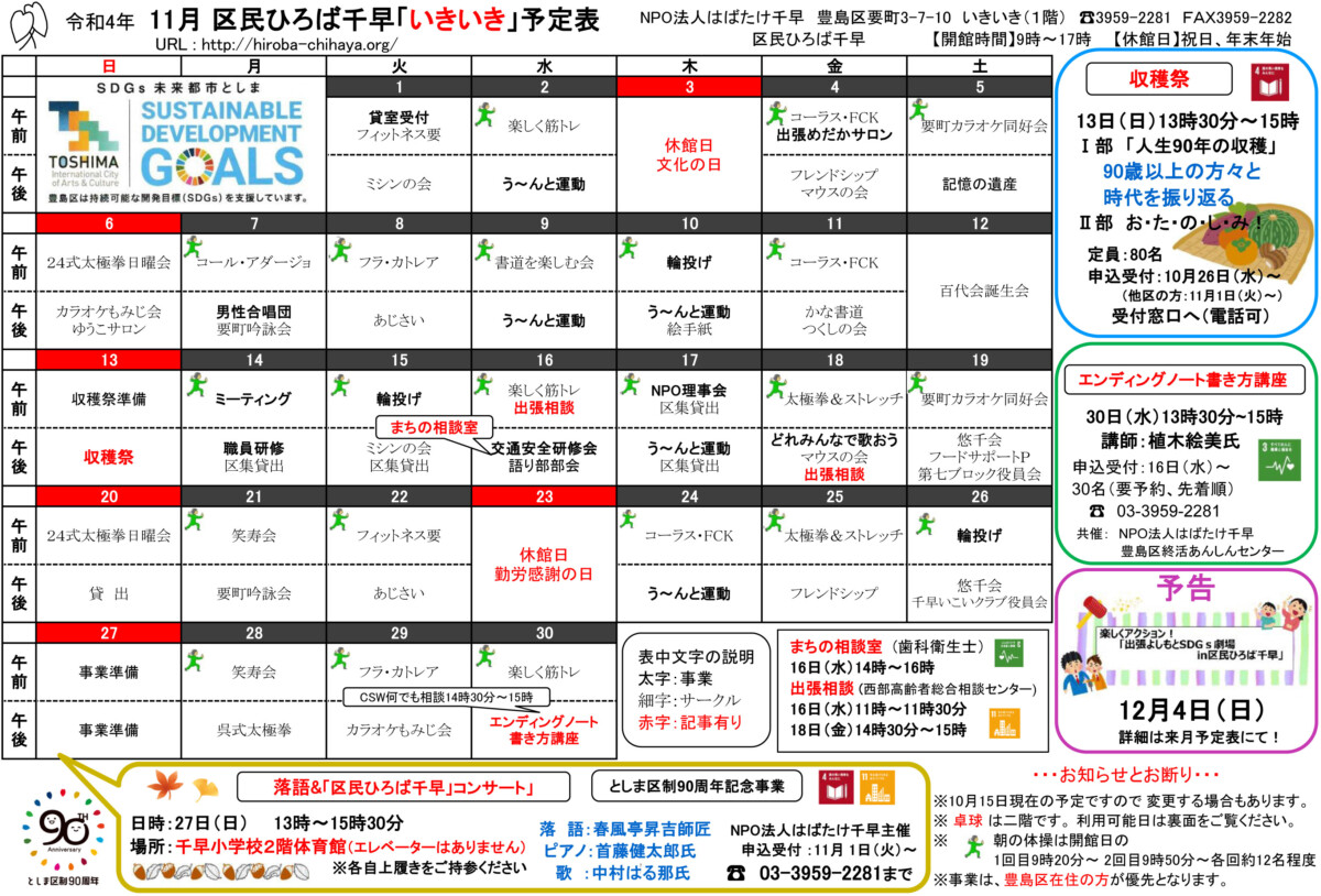 【 12月 】 ■ [要町三丁目町会] 古紙回収 日時:12月21日(日) 9時30分~ 各戸玄関前まで回収に伺います 【 1月 】 ■ 第17回 ふるさと千川どんど焼き 日時:1月11日(日) 10時00分~12時00分 会場:ふるさと千川ひろば 獅子舞ほか伝統芸能、芋のこ汁、おしるこ ■ [要町三丁目町会] 古紙回収 日時:1月25日(日) 9時30分~ 各戸玄関前まで回収に伺います