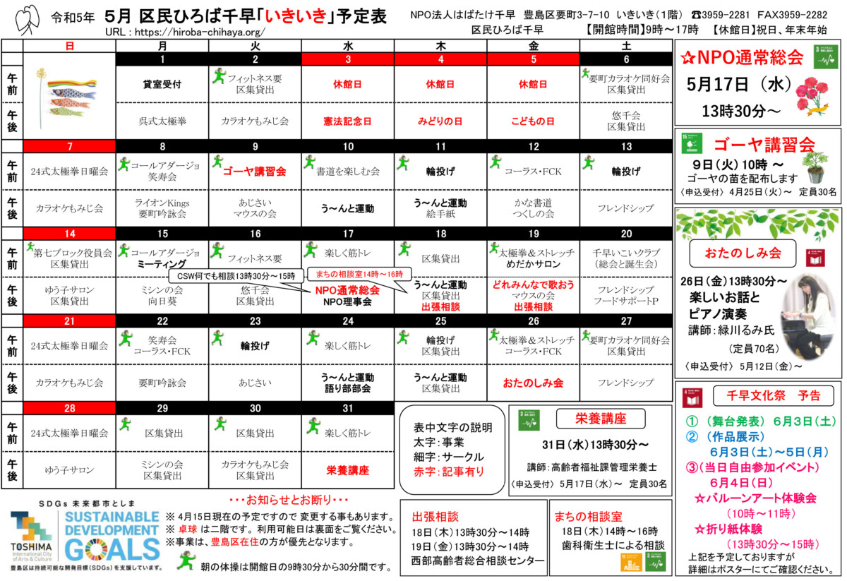 【 12月 】 ■ [要町三丁目町会] 古紙回収 日時:12月21日(日) 9時30分~ 各戸玄関前まで回収に伺います 【 1月 】 ■ 第17回 ふるさと千川どんど焼き 日時:1月11日(日) 10時00分~12時00分 会場:ふるさと千川ひろば 獅子舞ほか伝統芸能、芋のこ汁、おしるこ ■ [要町三丁目町会] 古紙回収 日時:1月25日(日) 9時30分~ 各戸玄関前まで回収に伺います