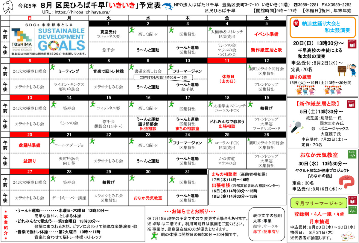 【 12月 】 ■ [要町三丁目町会] 古紙回収 日時:12月21日(日) 9時30分~ 各戸玄関前まで回収に伺います 【 1月 】 ■ 第17回 ふるさと千川どんど焼き 日時:1月11日(日) 10時00分~12時00分 会場:ふるさと千川ひろば 獅子舞ほか伝統芸能、芋のこ汁、おしるこ ■ [要町三丁目町会] 古紙回収 日時:1月25日(日) 9時30分~ 各戸玄関前まで回収に伺います