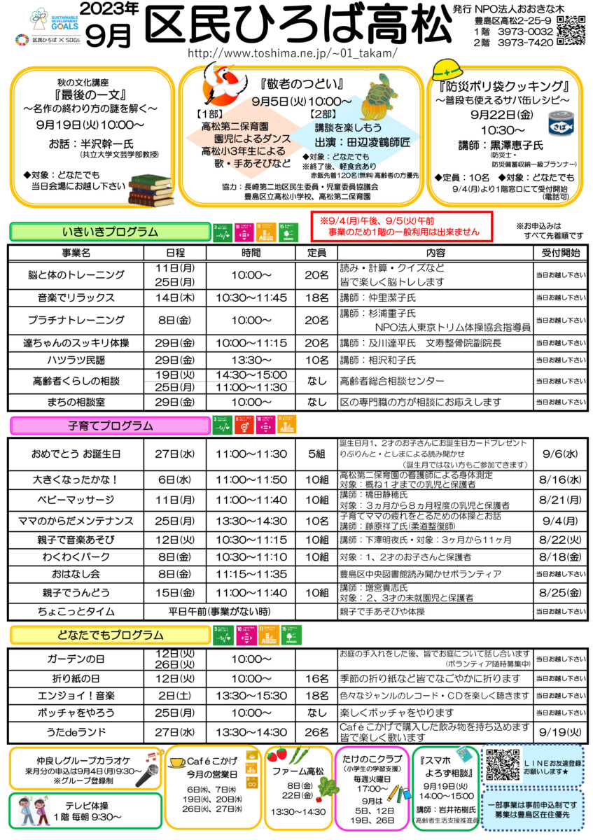 【 12月 】 ■ [要町三丁目町会] 古紙回収 日時:12月21日(日) 9時30分~ 各戸玄関前まで回収に伺います 【 1月 】 ■ 第17回 ふるさと千川どんど焼き 日時:1月11日(日) 10時00分~12時00分 会場:ふるさと千川ひろば 獅子舞ほか伝統芸能、芋のこ汁、おしるこ ■ [要町三丁目町会] 古紙回収 日時:1月25日(日) 9時30分~ 各戸玄関前まで回収に伺います