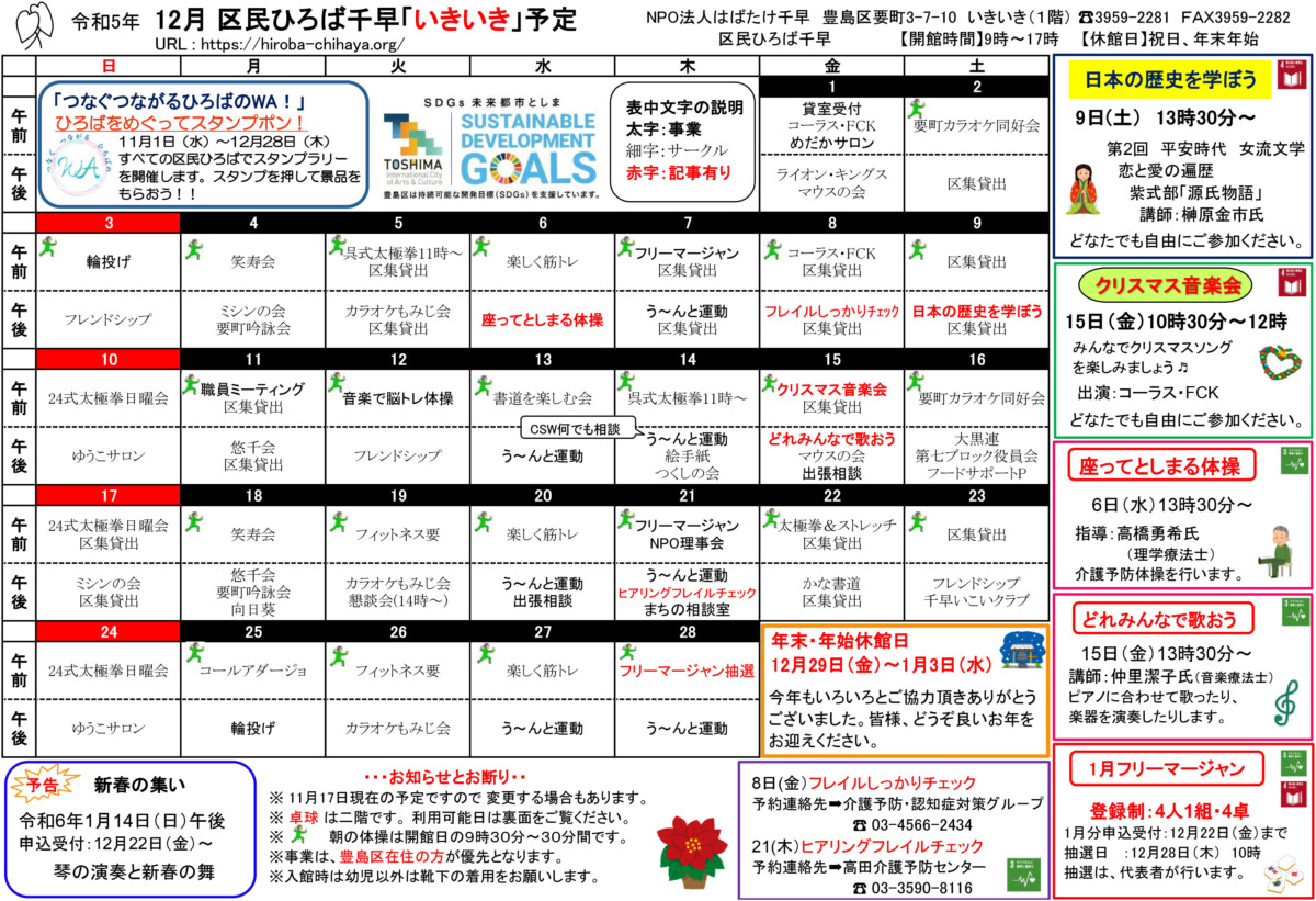 区民ひろば千早 令和5年12月予定表