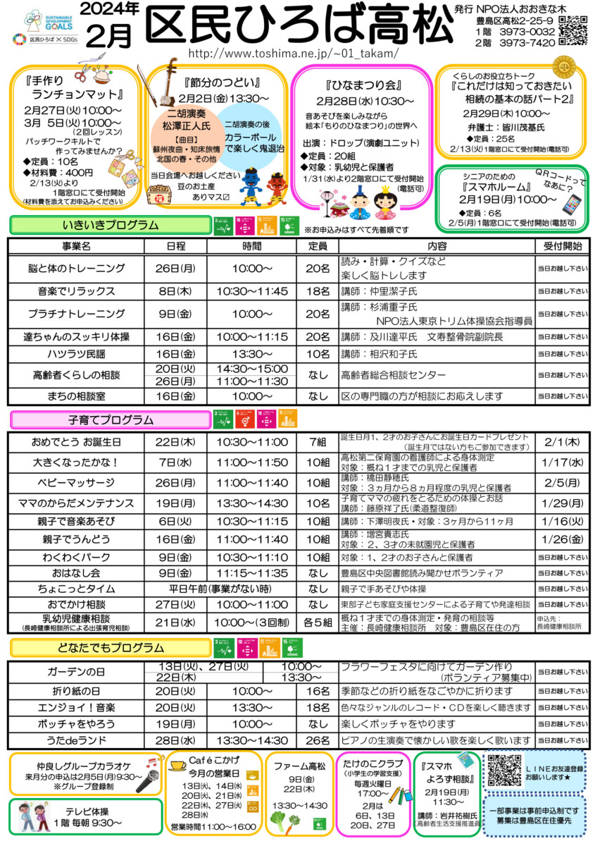 【 12月 】 ■ [要町三丁目町会] 古紙回収 日時:12月21日(日) 9時30分~ 各戸玄関前まで回収に伺います 【 1月 】 ■ 第17回 ふるさと千川どんど焼き 日時:1月11日(日) 10時00分~12時00分 会場:ふるさと千川ひろば 獅子舞ほか伝統芸能、芋のこ汁、おしるこ ■ [要町三丁目町会] 古紙回収 日時:1月25日(日) 9時30分~ 各戸玄関前まで回収に伺います