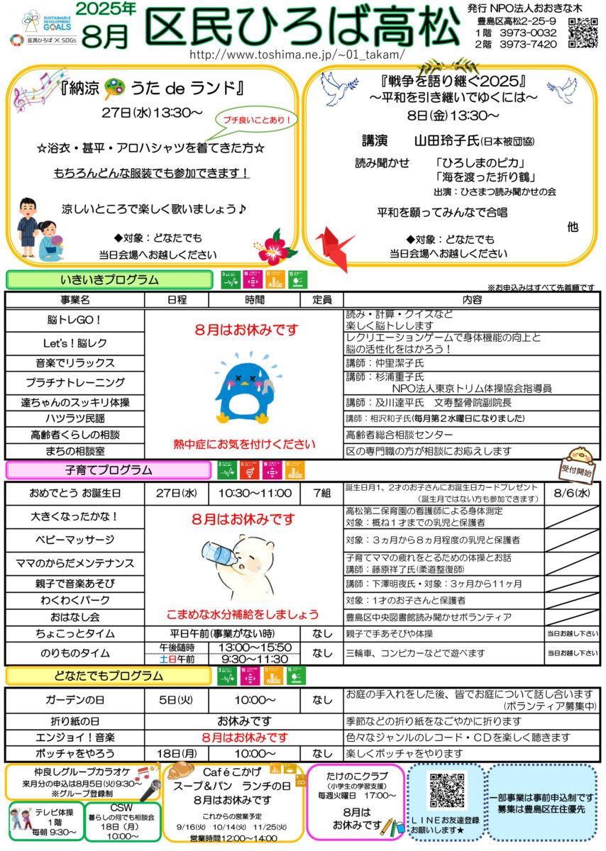 【 12月 】 ■ [要町三丁目町会] 古紙回収 日時:12月21日(日) 9時30分~ 各戸玄関前まで回収に伺います 【 1月 】 ■ 第17回 ふるさと千川どんど焼き 日時:1月11日(日) 10時00分~12時00分 会場:ふるさと千川ひろば 獅子舞ほか伝統芸能、芋のこ汁、おしるこ ■ [要町三丁目町会] 古紙回収 日時:1月25日(日) 9時30分~ 各戸玄関前まで回収に伺います