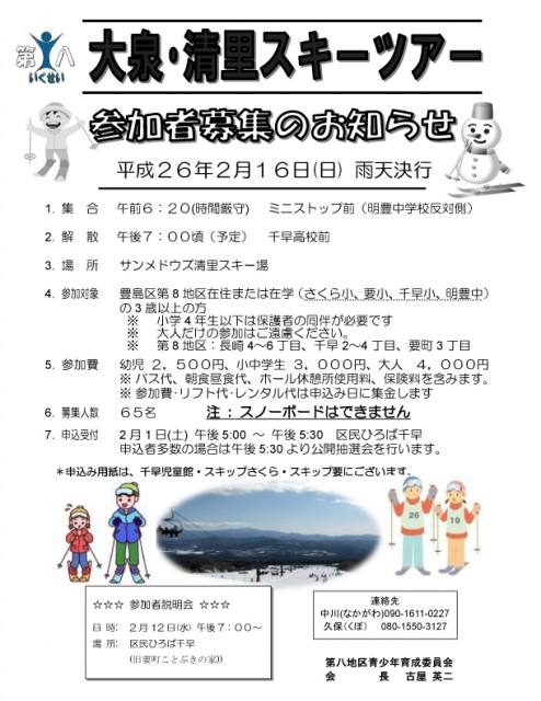 【 12月 】 ■ [要町三丁目町会] 古紙回収 日時:12月21日(日) 9時30分~ 各戸玄関前まで回収に伺います 【 1月 】 ■ 第17回 ふるさと千川どんど焼き 日時:1月11日(日) 10時00分~12時00分 会場:ふるさと千川ひろば 獅子舞ほか伝統芸能、芋のこ汁、おしるこ ■ [要町三丁目町会] 古紙回収 日時:1月25日(日) 9時30分~ 各戸玄関前まで回収に伺います